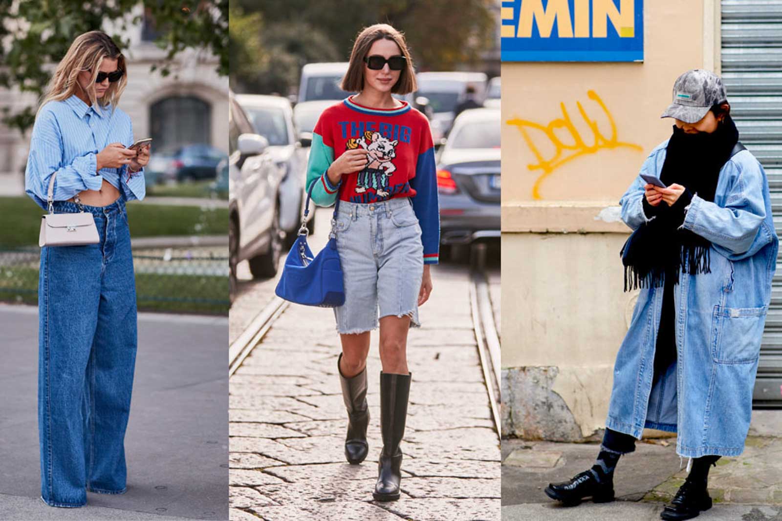 Mehr Denim war gar nicht möglich! Egal ob als Jeansshorts, Latzhose, Mom-Jeans oder oversized Boyfriend-Jacke: Ohne den Baumwollstoff ging gar nichts. Zu viel Denim? Nicht möglich! Auch heute kombinieren wir die Jeans-Teile, was das Zeug hält!