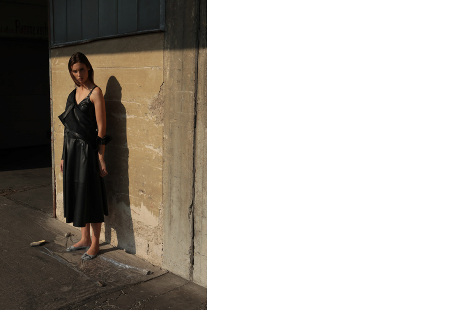 Beton ist unsere Leinwand, Leder unser Material. Damit treten wir dem Herbst entgegen, in Vollmontur von Kopf bis Fuß, stark und fokussiert darauf, dem Leder seinen rechtmäßigen Platz einzuräumen.