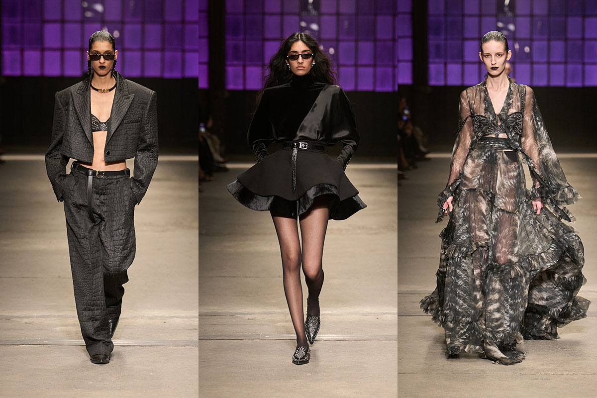 Fausto Puglisi versteht die DNA von Roberto Cavalli instinktiv. Saison für Saison navigiert er die verführerische Sprache des Hauses mit Präzision und bleibt den zentralen Codes treu: Exzess als Selbstbewusstsein, Sinnlichkeit als Stärke. Für Herbst/Winter 2026/27 wirkt der Ton konzentrierter. Eine dunklere Palette und ein klarerer Fokus ersetzen offene Opulenz und lassen Textur, Silhouette und Konstruktion die Wirkung tragen.