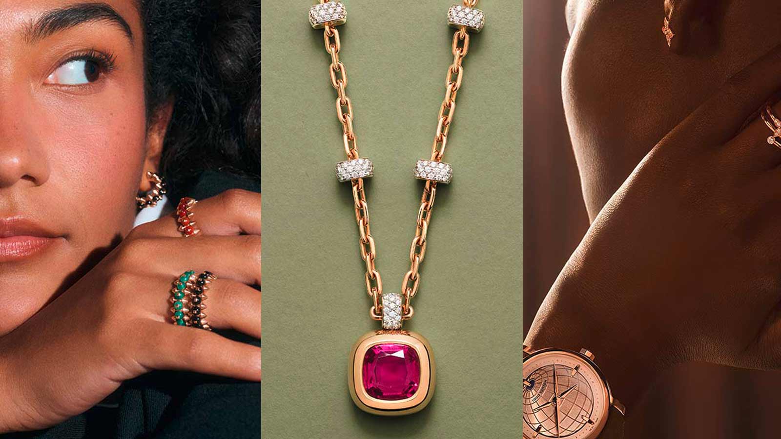 Wir wollen eine meterhohe Tischuhr, füllen unsere Wunschliste mit allerlei Funkelndem und werden nostalgisch beim Anblick eines Zifferblattes: Hier sind unsere aktuellen Lieblings aus der Schmuck- und Uhrenwelt.