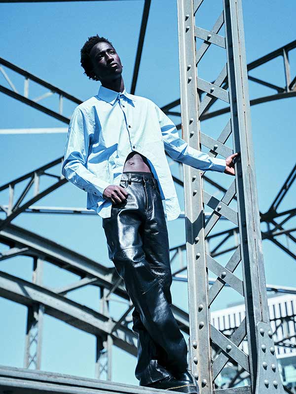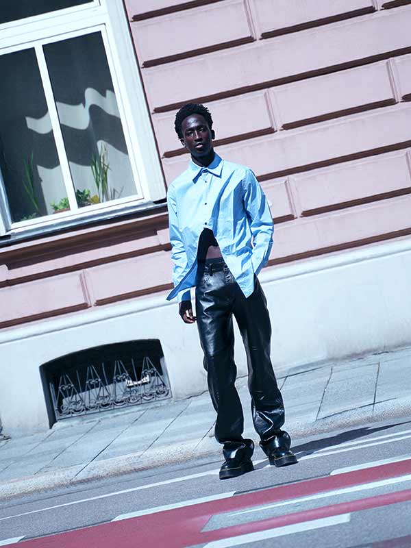 Hemd von GMBH. Lederhose von MARINE SERRE.