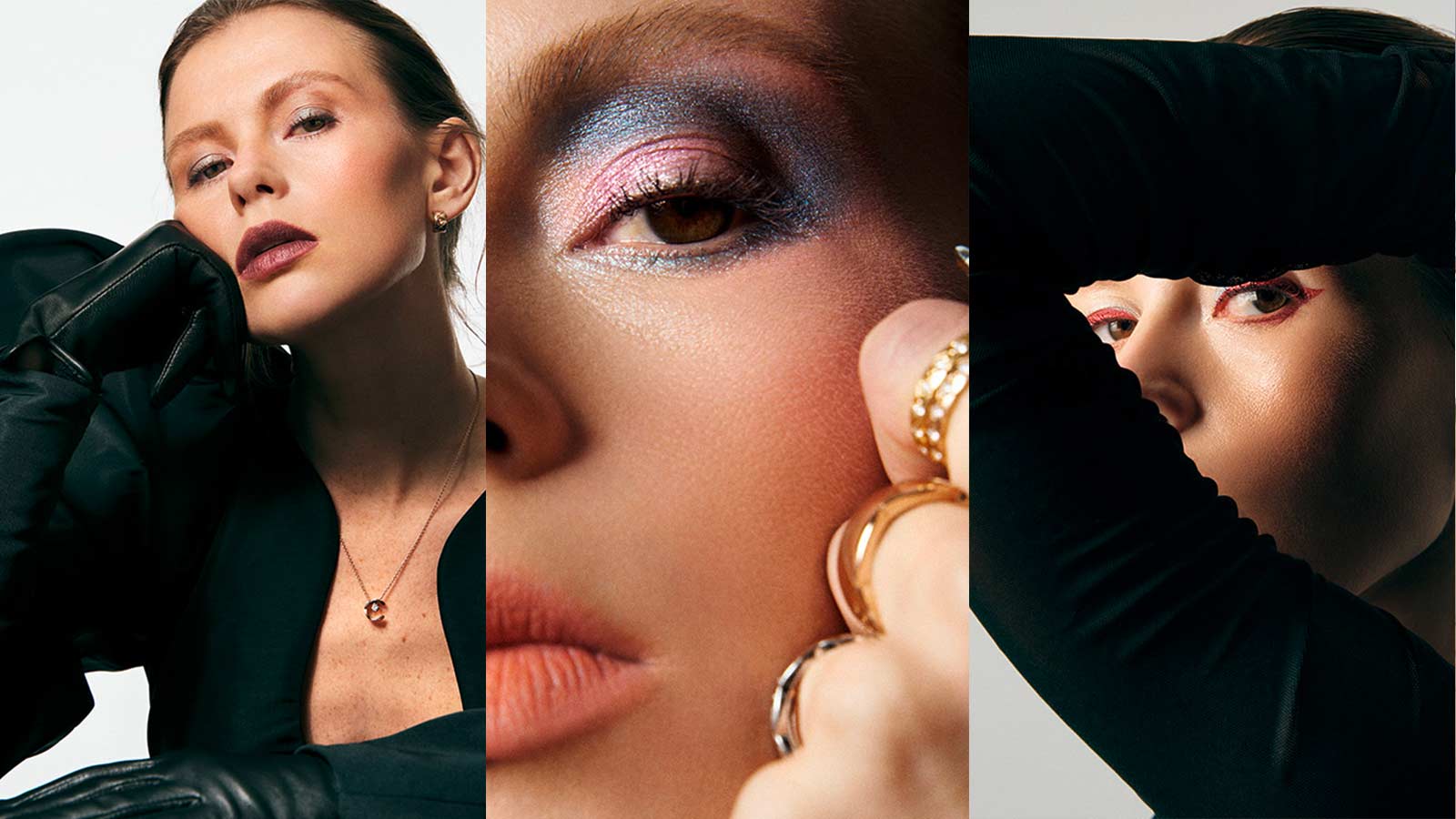 Lippen ROUGE ALLURE LAQUE 559 NÉBULEUSE. Augen LES 4 OMBRES 397 NUIT ASTRALE. Mascara NOIR ALLURE 77 ANTHRACITE.