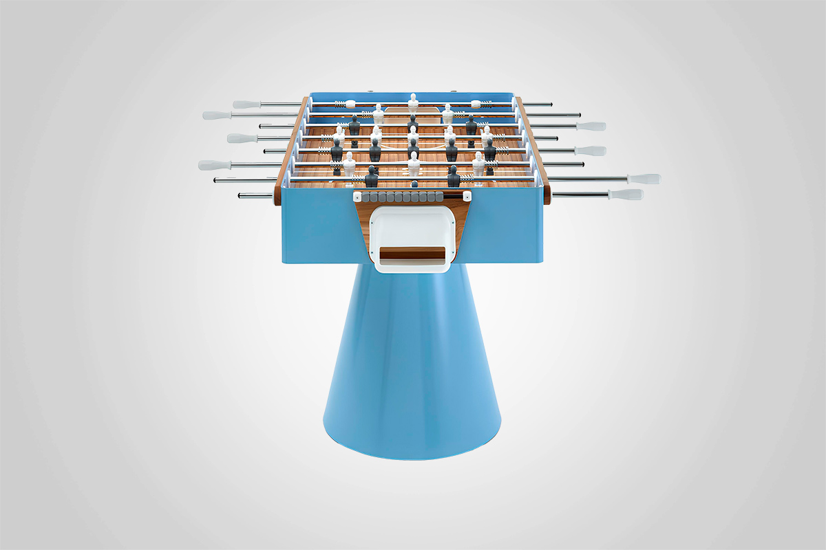 Bis jetzt dachten wir immer, diese Tischfußball-Kicker gehören in den Keller oder in eine schummrige Bar. Dass sie auch der Mittelpunkt eines Wohnzimmer sein können, wurde uns erst klar, als wir das himmelblaue Modell von Fas Pendezza gesichtet haben. Selbst wer keine Lust drauf hat, sich die Handgelenke beim Kicken zu verrenken, wird sich kaum daran stören, wie dieses Stück jedes andere Möbel in den Schatten stellt. Fas Pendezza, Ciclope Capri, Tischfußball-Tisch, ca. 4.600.—, faspendezza.it