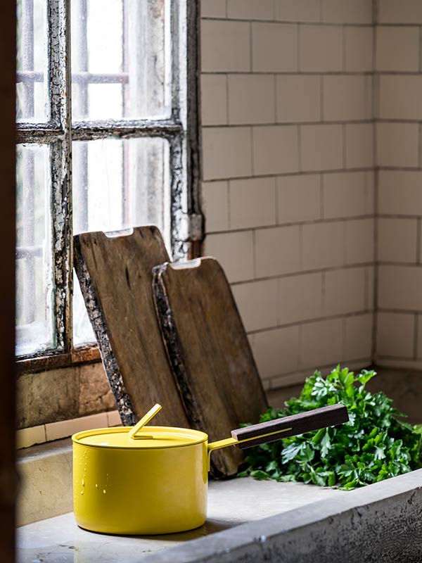 Die Kochfaulen unter uns mögen jetzt verwirrt sein, aber: Es gibt tatsächlich Pfannen, die spezifisch für die Zubereitung von Saucen gemacht sind. Die Kochprofis unter uns wissen: Die richtige Sauce kann das langweiligste Gericht in eine Michelin-Sternwürdige Geschmacksexplosion verwandeln. Sie zu kreieren ist eine Wissenschaft für sich. Und für die DesignliebhaberInnen ist das Essen zweitrangig. Sie urteilen mit dem Auge, und dieses sagt: Eine knallgelbe Pfanne bringt Leben in jede Küche – auch in die, in der kaum gekocht wird. knindustrie.it